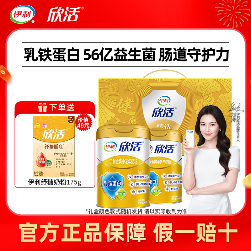 伊利欣活中老年奶粉益生菌高蛋白高钙无蔗糖老人营养早餐官方正品