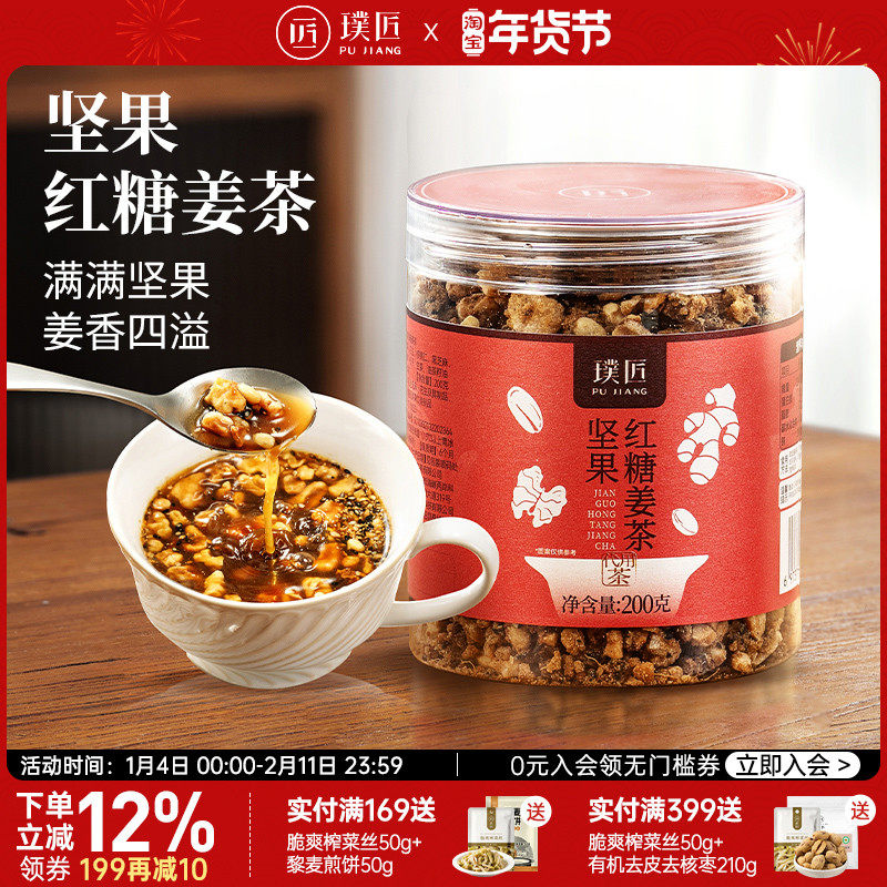 坚果红糖姜茶生姜红糖水核桃腰果松子姜茶送女友大姨妈冲泡月子茶