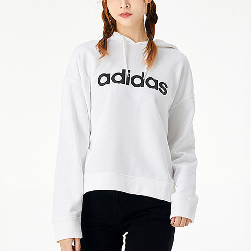 阿迪达斯宽松卫衣女装2023秋季连帽休闲运动外套白色套头衫GU6130