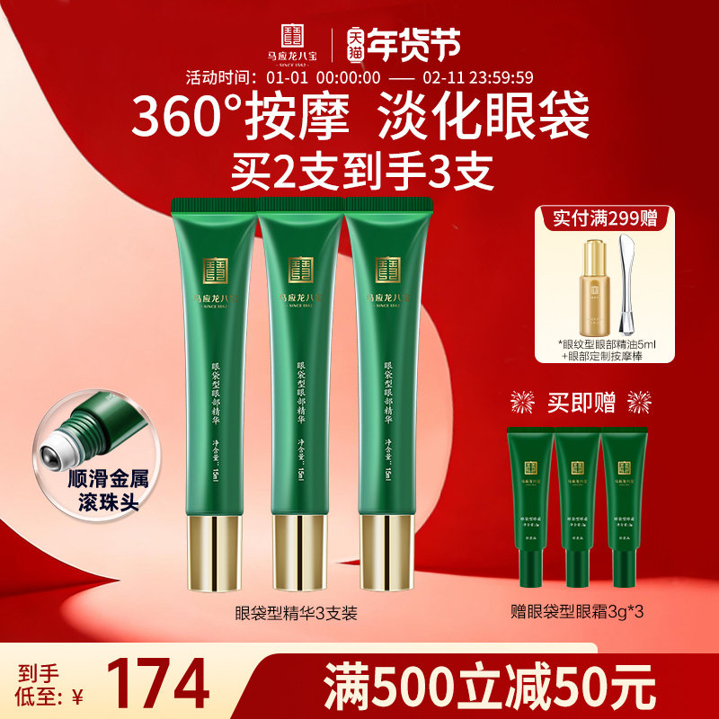 马应龙眼霜眼部精华液去淡化眼袋黑眼圈抗皱滚珠按摩补水保湿八宝