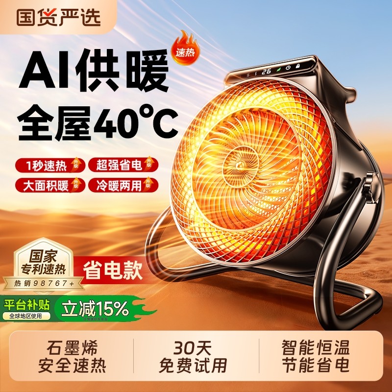 石墨烯取暖器家用暖风机小型节能省电电暖气静音全屋速热小太阳办公室学生宿舍浴室内大面积制热冬日取暖神器