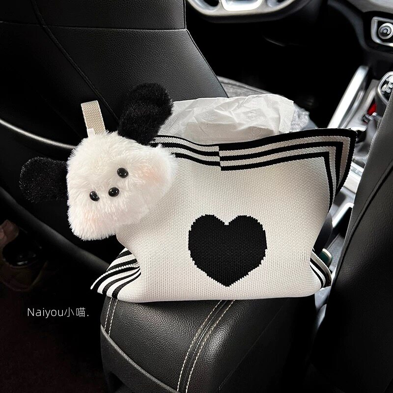 车载纸巾盒创意可爱小狗装饰抽纸盒车内挂式汽车纸巾袋车用纸抽盒