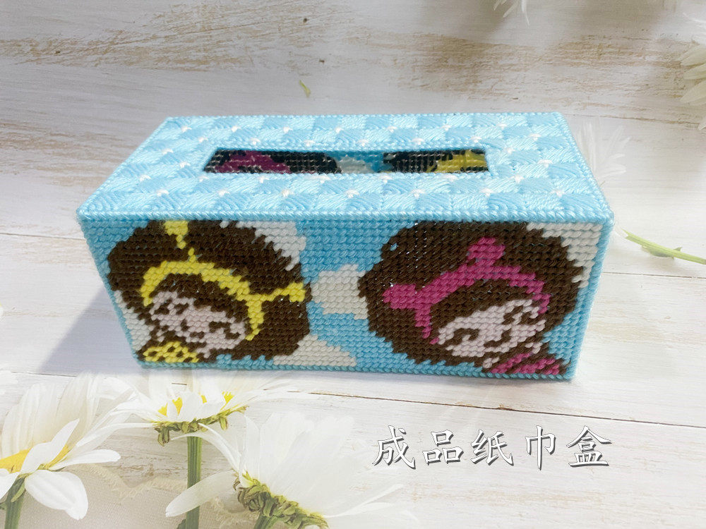 【成品】手工绣好的立体绣毛线绣客厅汽车车载纸巾盒抽纸盒蓝娃娃