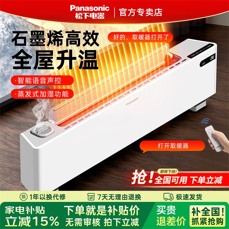 松下踢脚线取暖器家用节能电暖加湿负离子净化25新款石墨烯暖风机