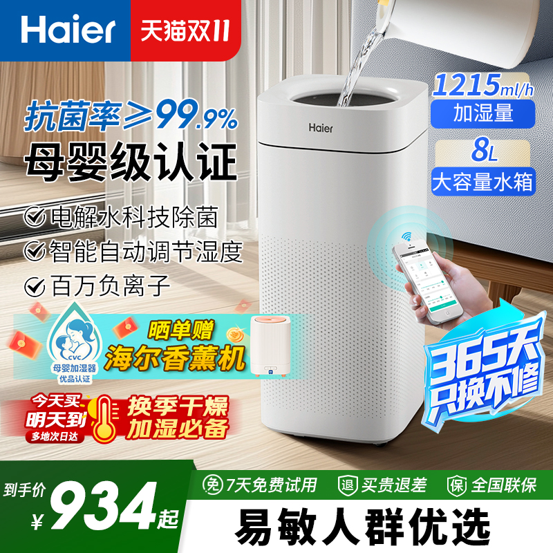 海尔无雾加湿器家用全水路电解水杀菌技术客厅轻音孕妇婴儿负离子