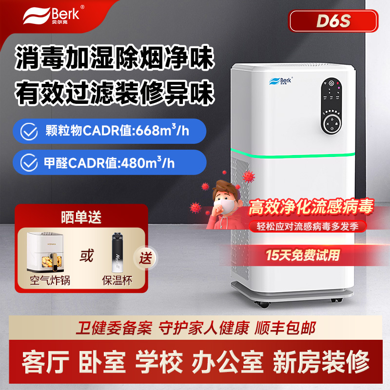 贝尔克空气净化器家用除甲醛TVOC负离子杀菌D6S净化加湿一体机