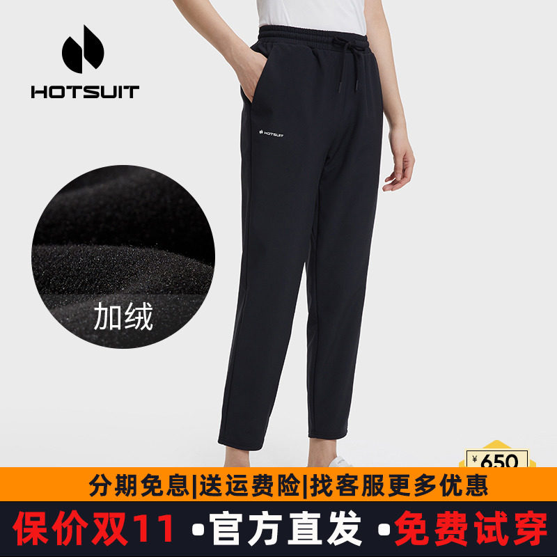 hotsuit运动裤女2026秋冬时尚加绒宽松针织抽绳长裤加厚休闲跑步c