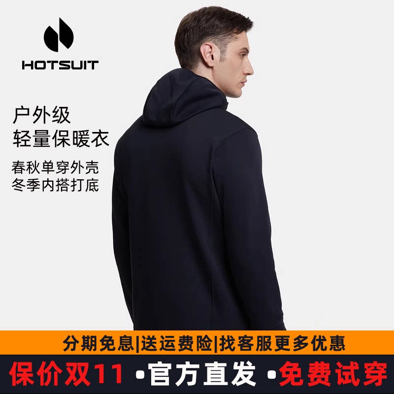 hotsuit后秀运动外套暖气绒连帽保暖针织开衫上衣男跑步加绒春秋