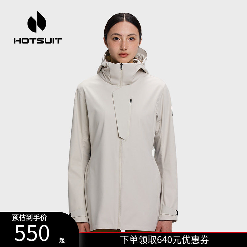 hotsuit后秀运动风衣女中长款2026春季新款户外加绒保暖防风外套