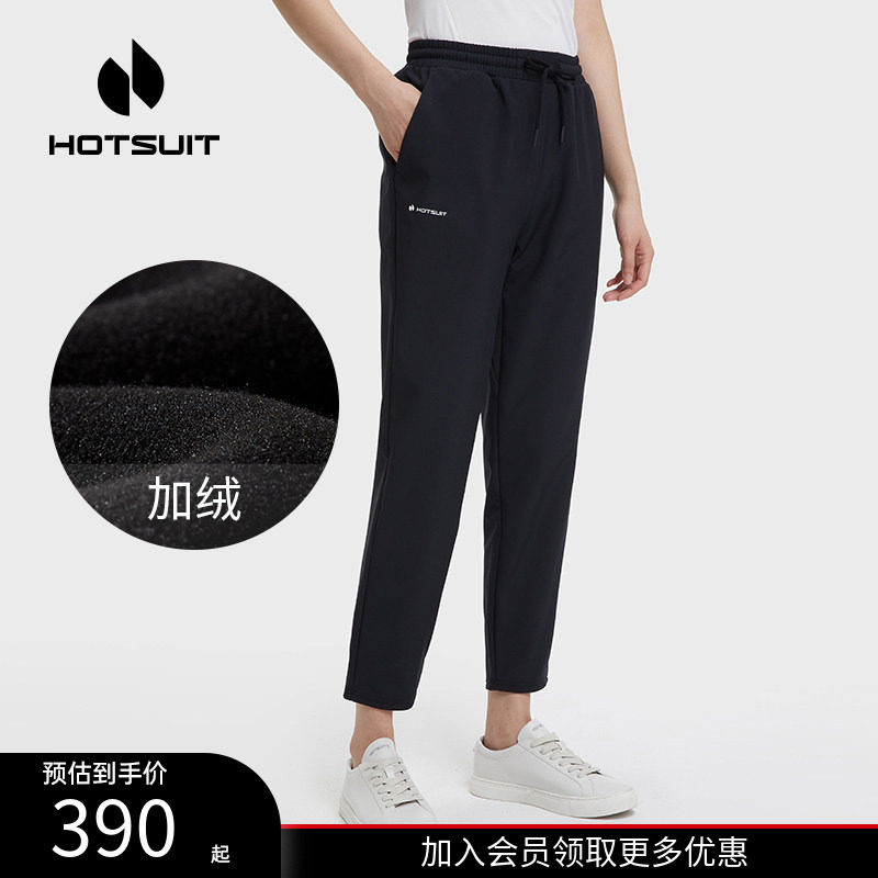 hotsuit运动裤女2025冬季时尚加绒宽松梭织抽绳长裤加厚休闲跑步