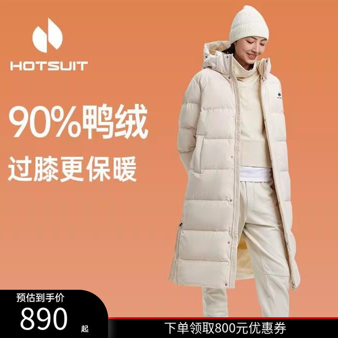 hotsuit后秀长款羽绒服女士冬季2025连帽加厚保暖休闲运动外套男