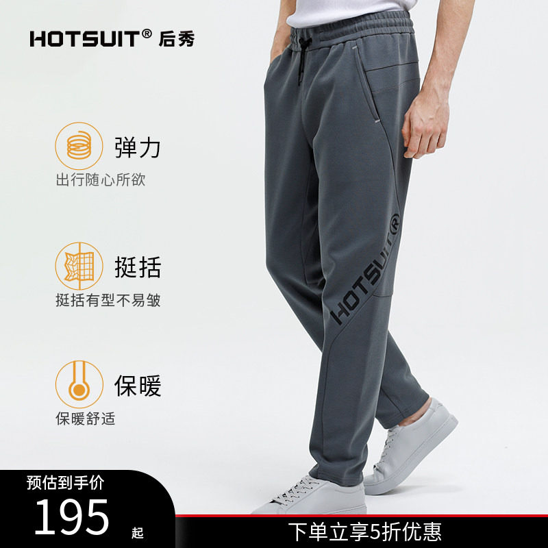 hotsuit后秀运动裤男士春季新款加厚保暖裤轻薄直筒通勤休闲裤