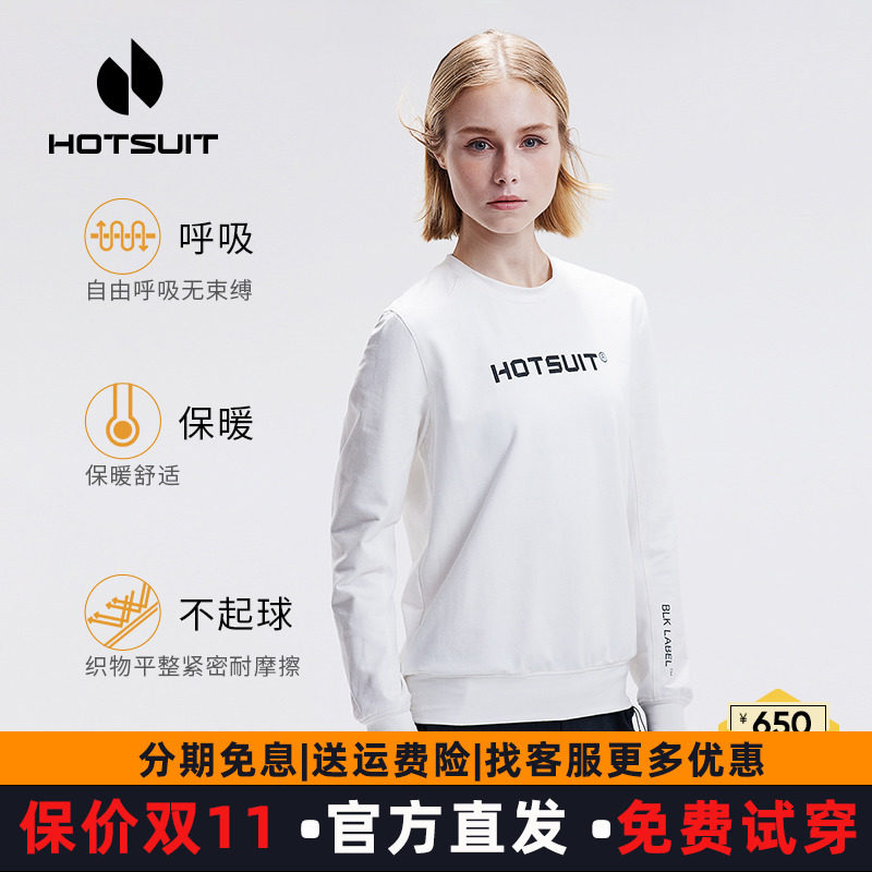 hotsuit运动卫衣2025春秋女休闲T恤套头衫白色圆领薄款长袖上衣q