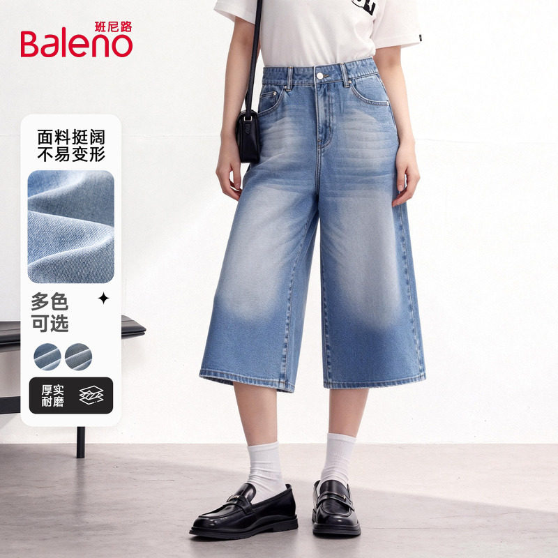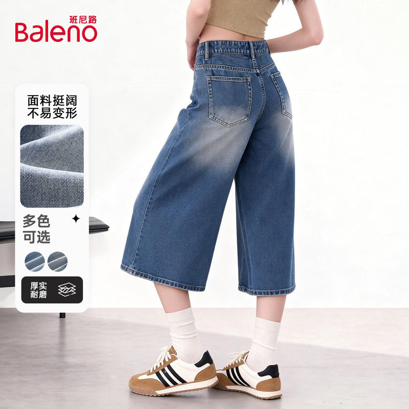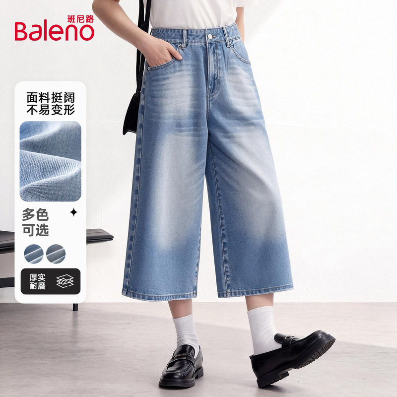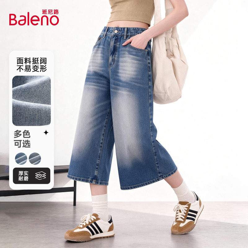 班尼路七分牛仔裤女2026春夏新款柔软亲肤高腰小个子宽松阔腿裤Q
