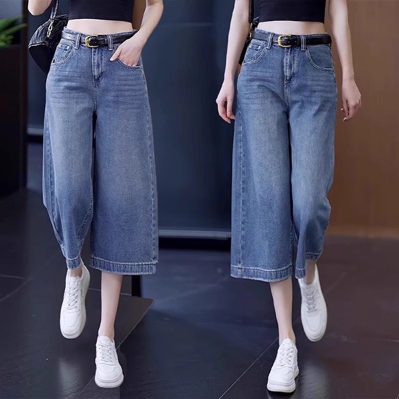 春夏薄款阔腿牛仔裤女显瘦小个子2025新款高腰七分八分宽松直筒裤