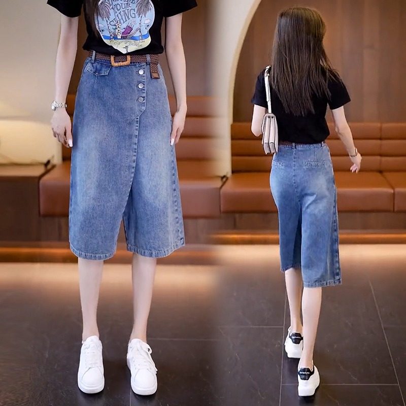 牛仔裙半身裙薄款裙裤女春夏七分裤2025年新款高腰宽松显瘦阔腿裤