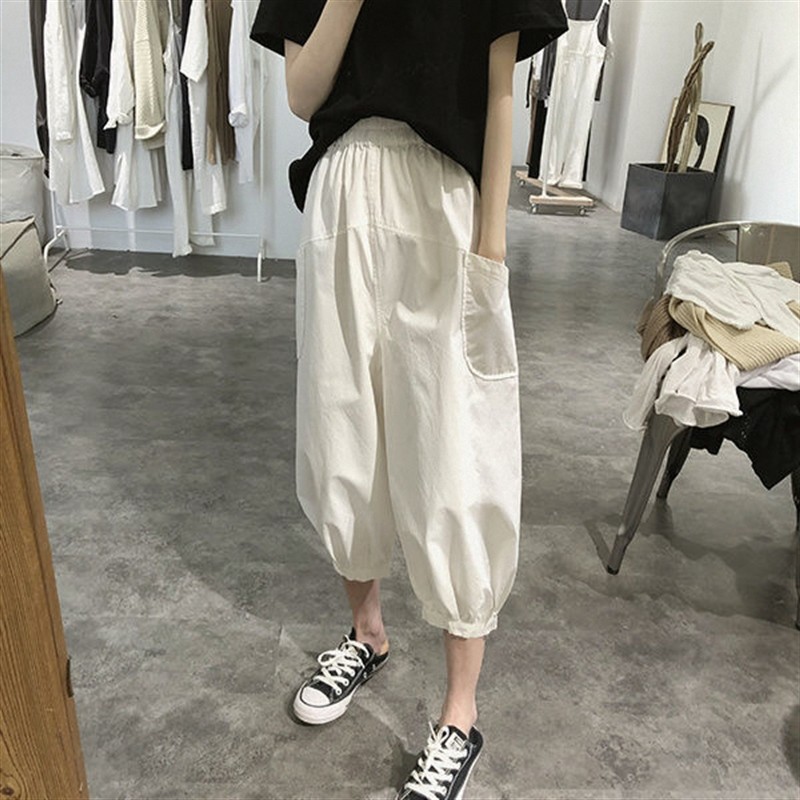七分裤高腰萝卜裤春夏新款宽松大码显瘦阔腿口袋休闲含棉灯笼裤女