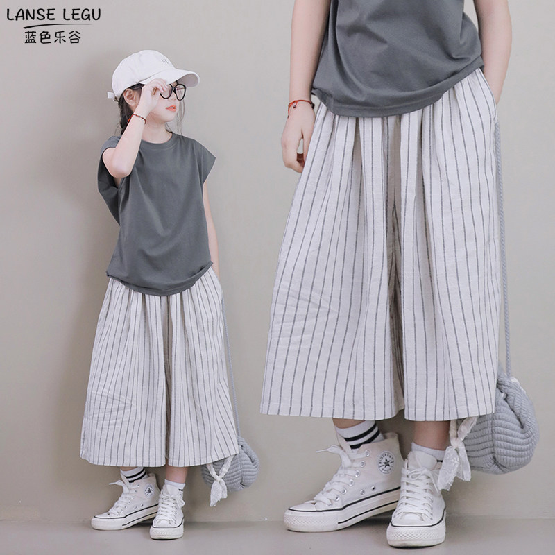 冰丝棉麻阔腿裤女2026春夏新款初高中学生休闲宽松小个子七分裙裤