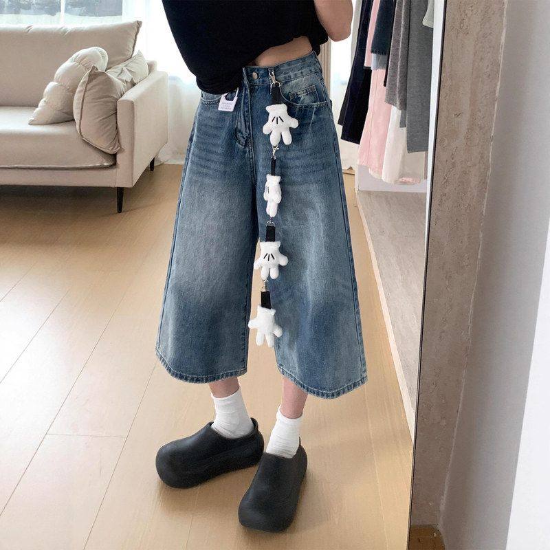 阔腿牛仔裤女2025年新款春夏高腰宽松五分短裙裤显瘦薄款七分中裤