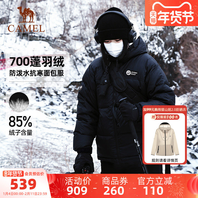 骆驼熊猫泡泡冬季羽绒服女黑色加厚保暖冬装面包服户外防寒外套男
