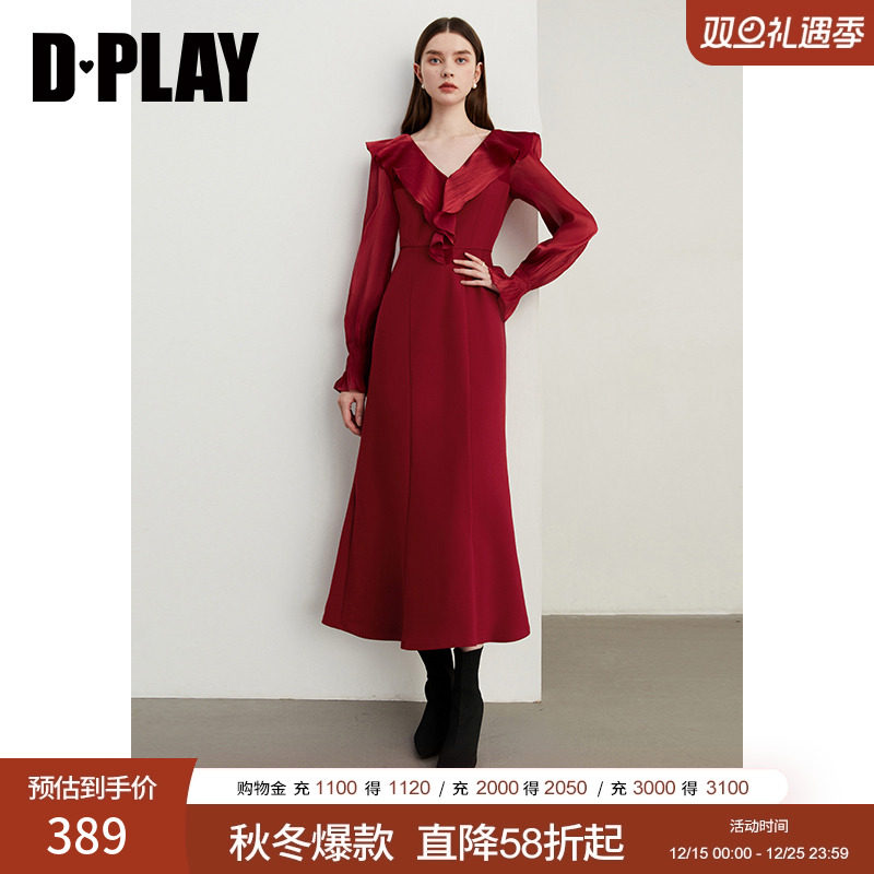 LaceMade 浓情波尔多 法式复古通勤长款红色长袖连衣裙敬酒服冬季