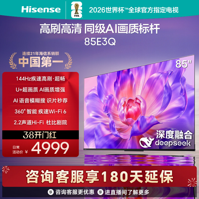 海信电视85E3Q 85英寸 高刷高清 AI画质标杆以旧换新补贴4K电视机
