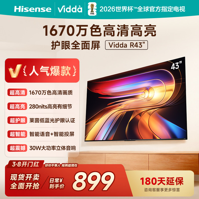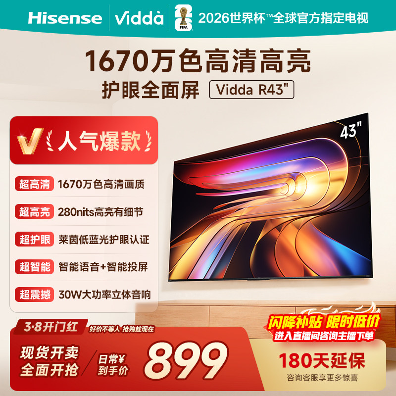 Vidda海信电视 R43 4K版43英寸120Hz高刷 液晶电视机以旧换新补贴