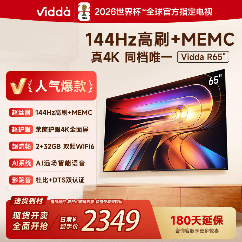Vidda 海信电视R65 65英寸4K144hz高刷家用挂墙平板电视机