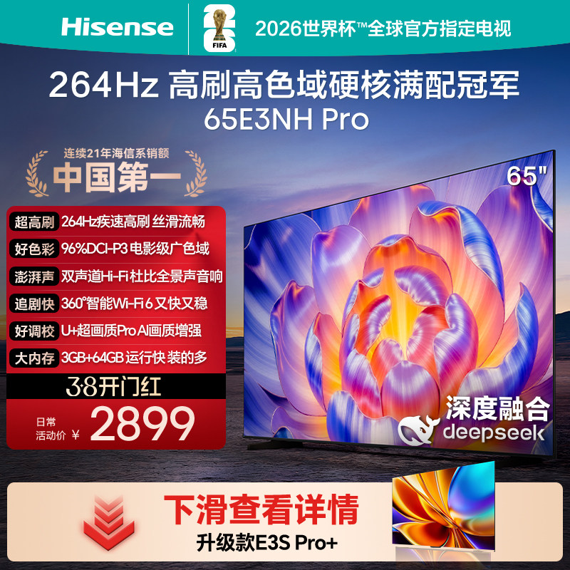 海信电视65E3NH Pro 65英寸 U+超画质引擎 264Hz 以旧换新电视机
