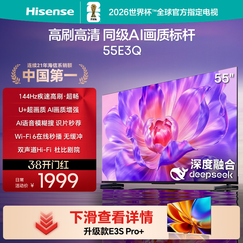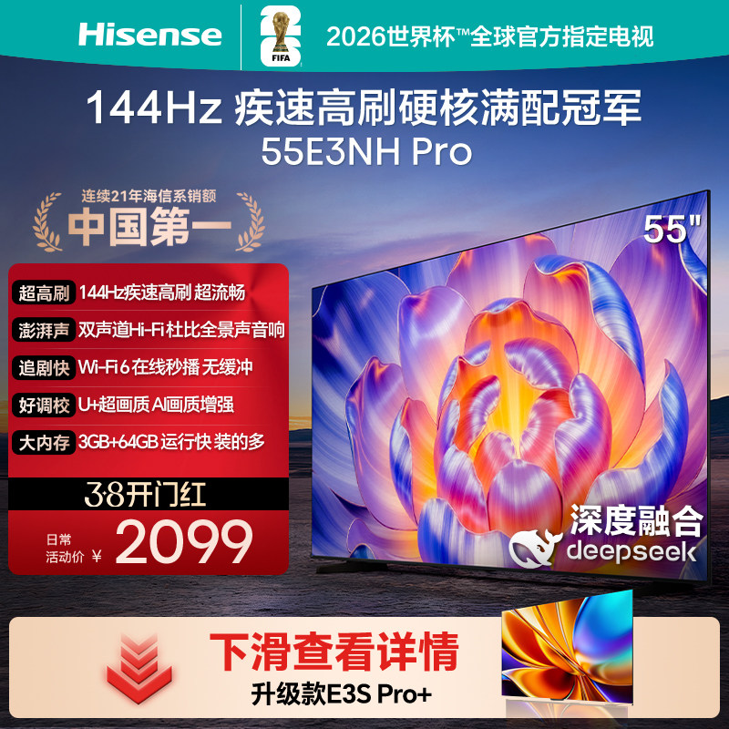 海信电视55E3NH Pro 55英寸 144Hz高刷 大内存 以旧换新电视机