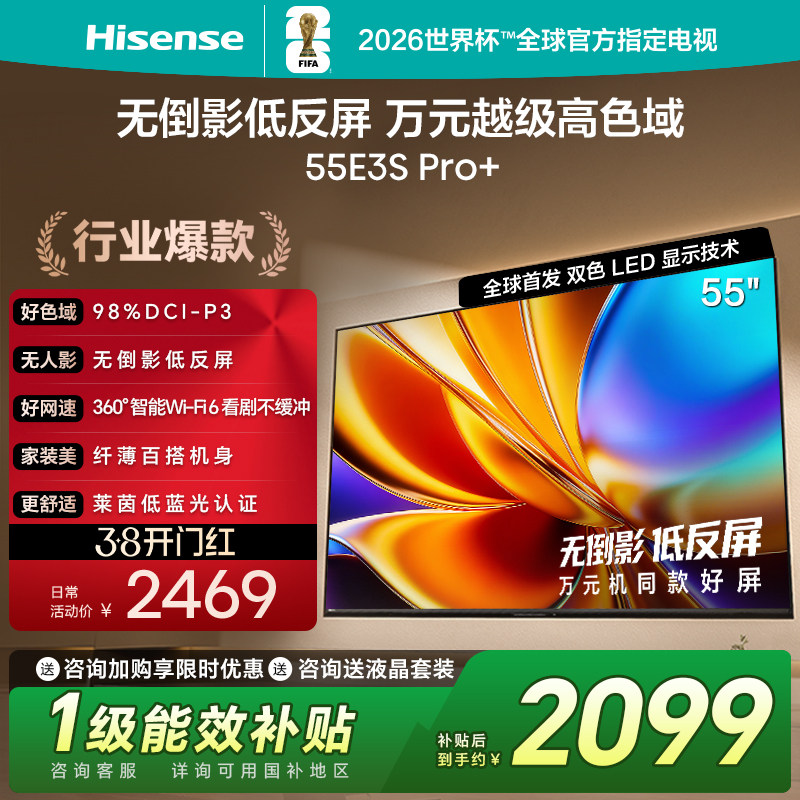 海信电视E3S Pro+ 55英寸 万元级高色域抗反光 E3QHPro升级版