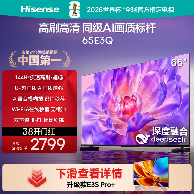 海信电视65E3Q 65英寸 高刷高清 AI画质标杆以旧换新补贴4K电视机