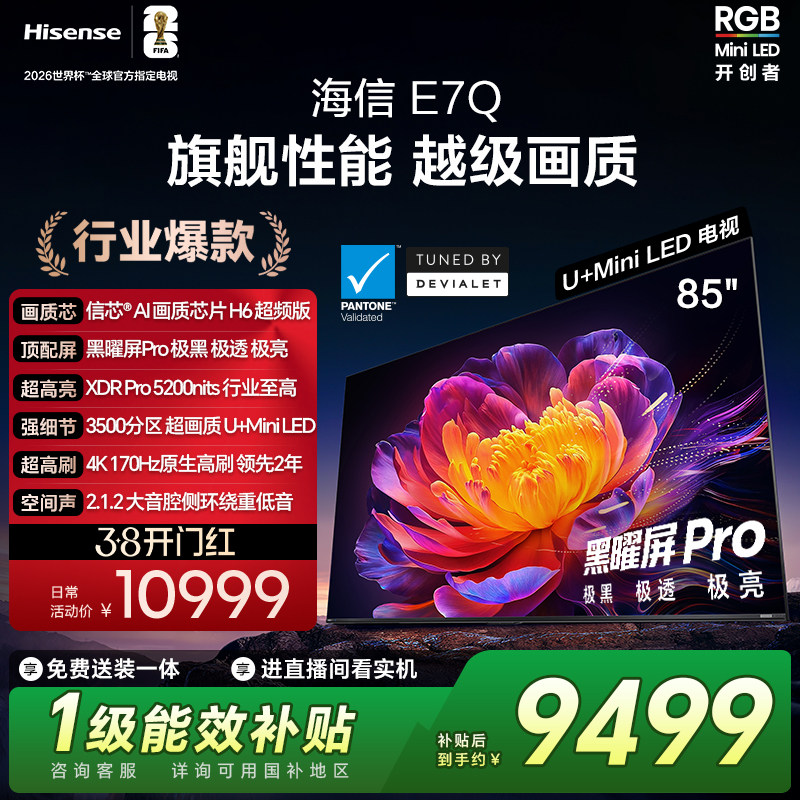 海信电视E7Q 85英寸 信芯芯片H6超频 黑曜屏Pro 5200nits 电视e7n