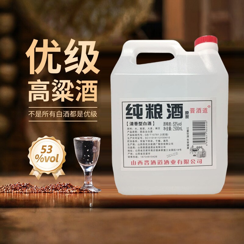 【53度】灌装纯粮食清香型原浆2.5L桶(4.6到4.8斤)