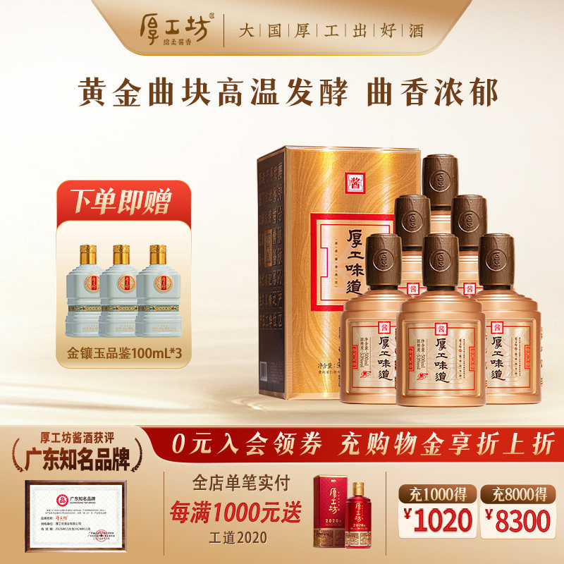 厚工坊厚工味道·金 贵州53度绵柔酱香白酒 纯粮食坤沙 500mL*6