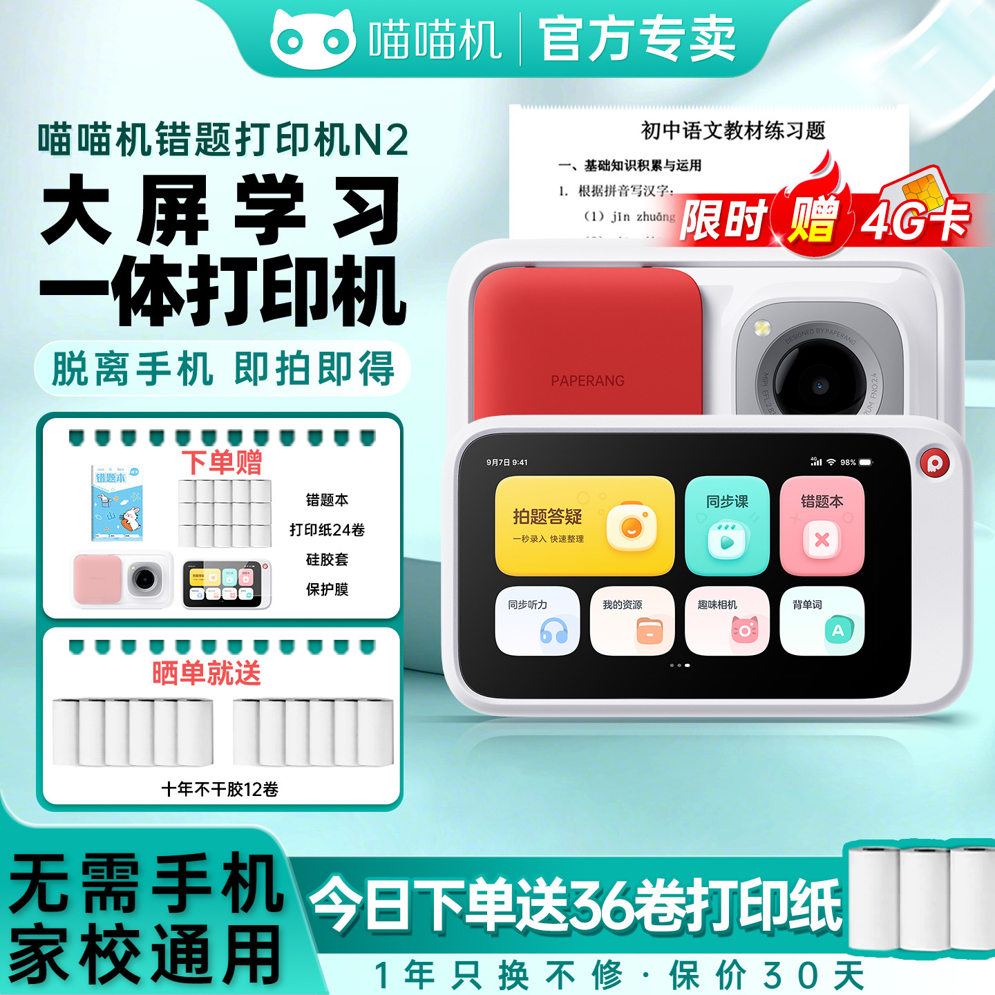 作业帮喵喵机N1博学版N2错题打印机可拍照无需手机小初高中生学生便携式4G无墨智能家用带视频小型学习打印机