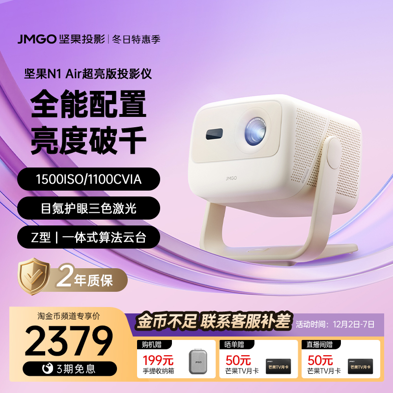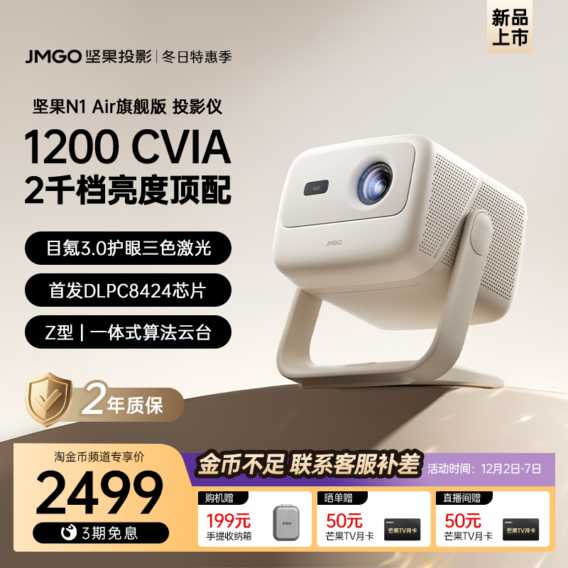【新品首发】坚果N1 Air超亮版三色激光投影仪家用百寸大屏超高清卧室客厅投墙可连手机投屏便携式小型投影机
