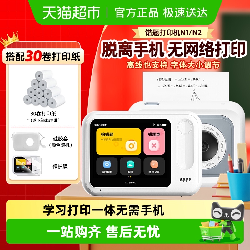【无需手机错题打印机】作业帮喵喵机N1 N2可拍照WiFi学生用学习家用迷你型便携式高清口袋宽幅错题免抄神器