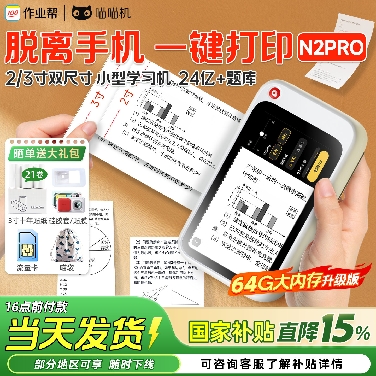 【政府补贴】作业帮喵喵机N2无需手机错题打印机便携式迷你小微型宽幅超清小初高中学生热敏无墨N1手机打印机