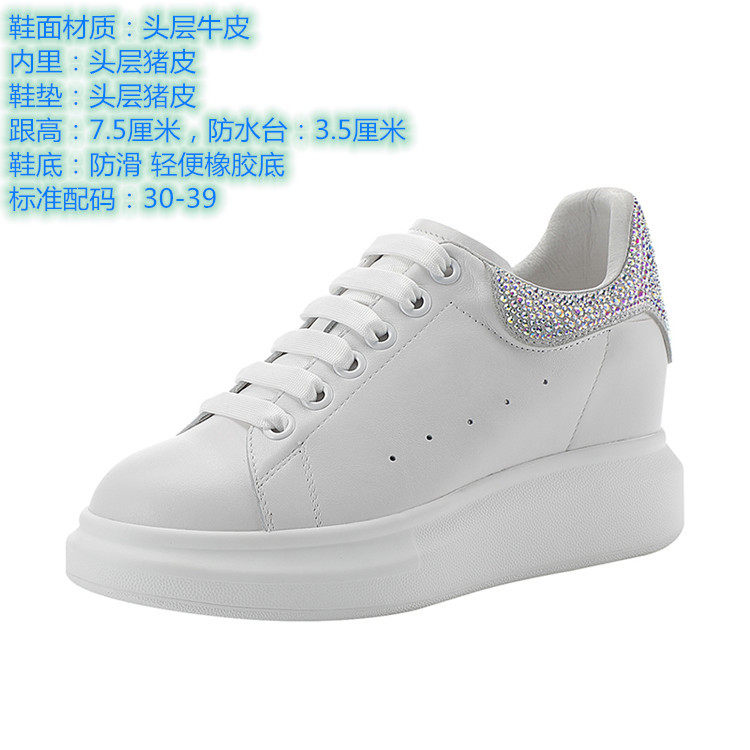 经典百搭小白鞋 牛皮加钻时尚休闲鞋 内增高小码鞋2020初秋新款