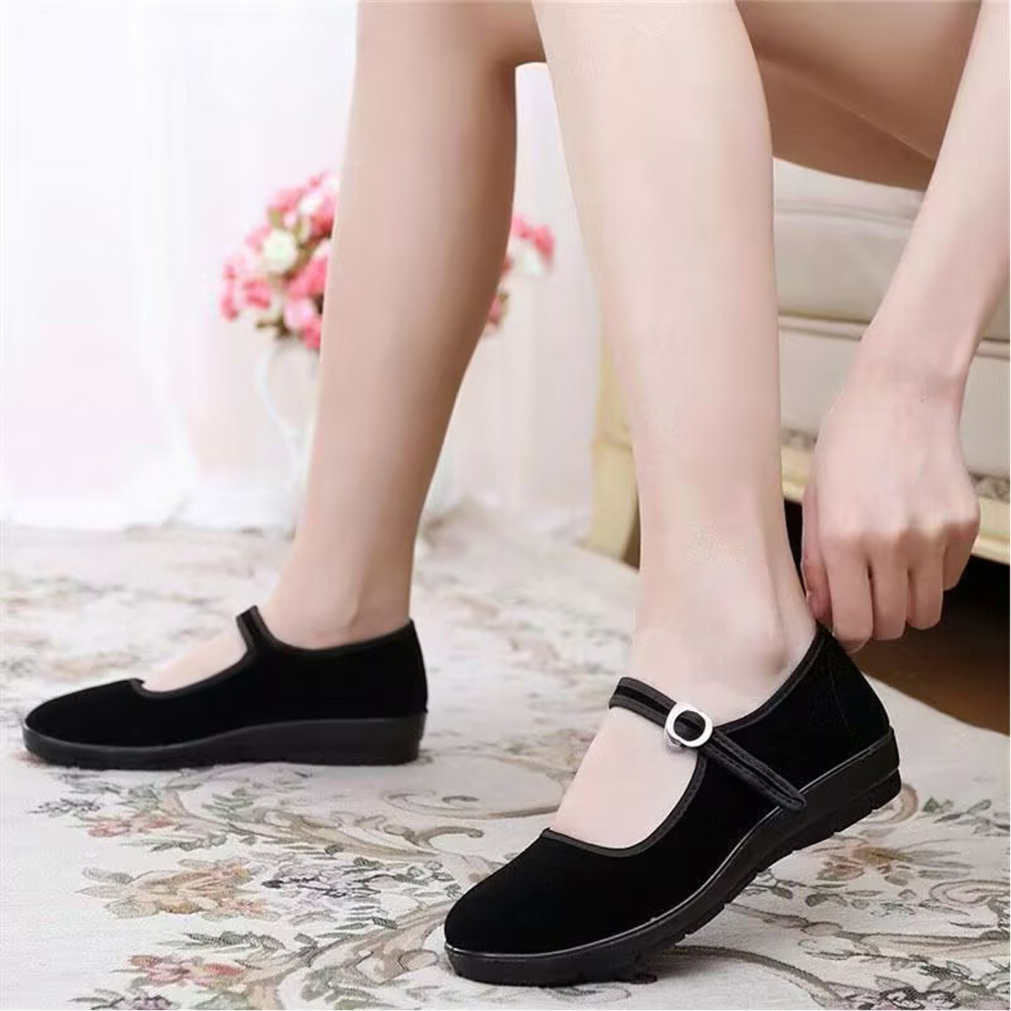 老北京布鞋浅口女鞋一字带黑色工装鞋小码鞋31码32码33码34表演鞋