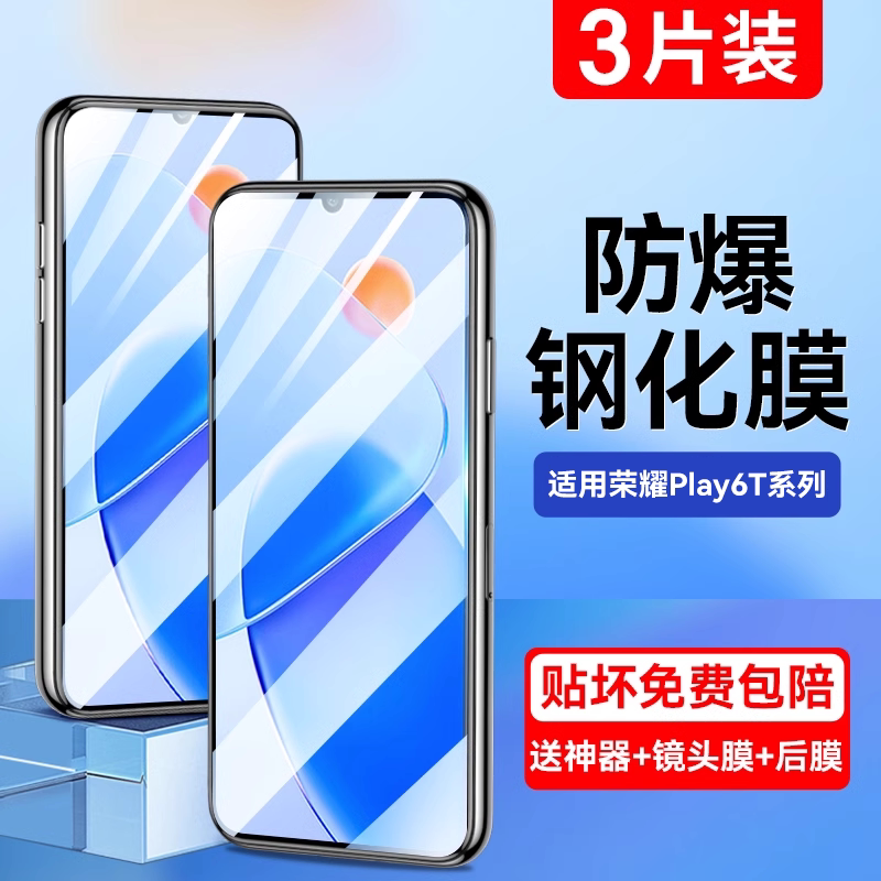 适用荣耀play6t钢化膜play6c屏保paly6tpro手机膜高清抗蓝光玻璃honor全屏覆盖防摔防爆保护华为Play6C刚化膜