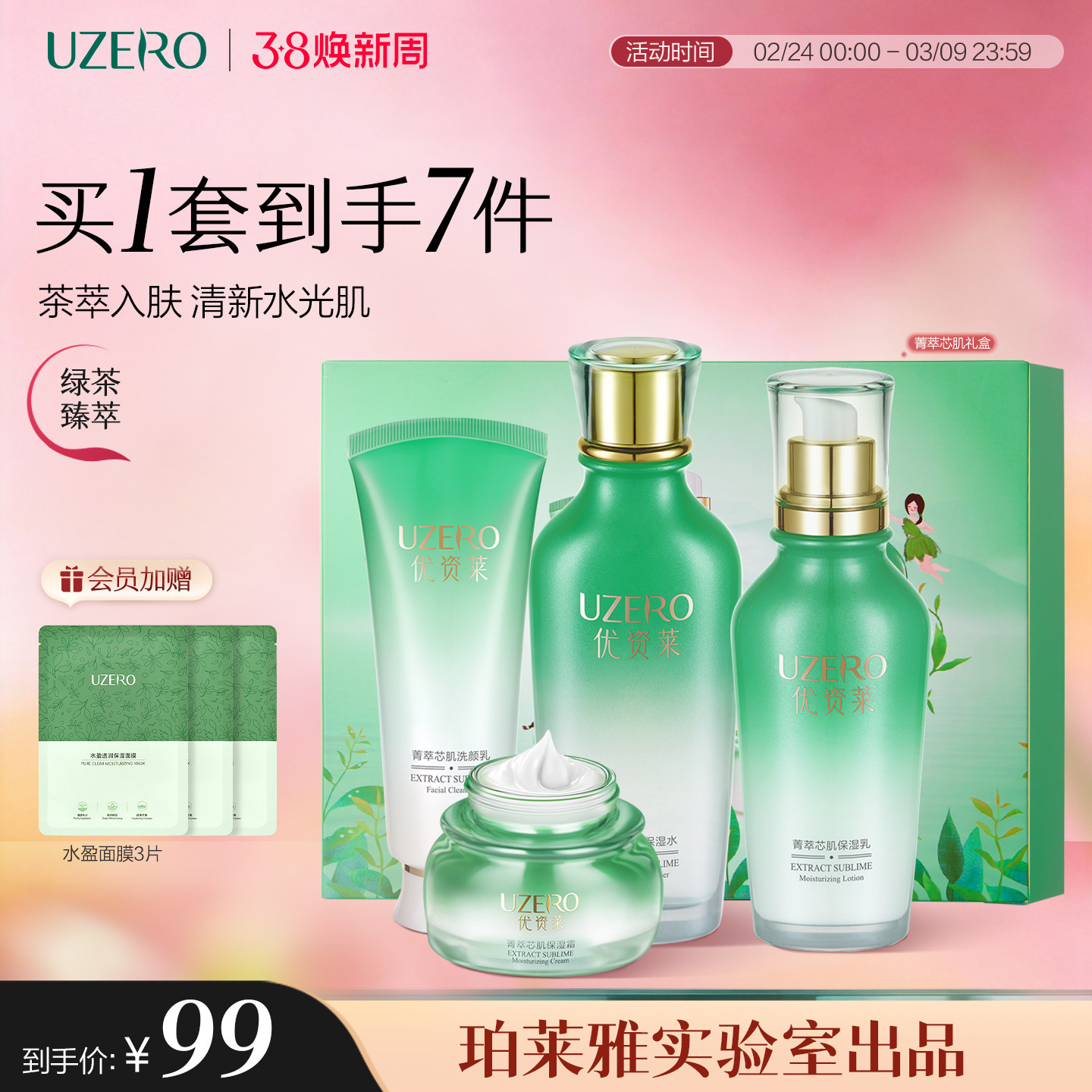优资莱绿茶菁萃芯肌化妆品套装女补水保湿礼盒洁水乳护肤官方正品