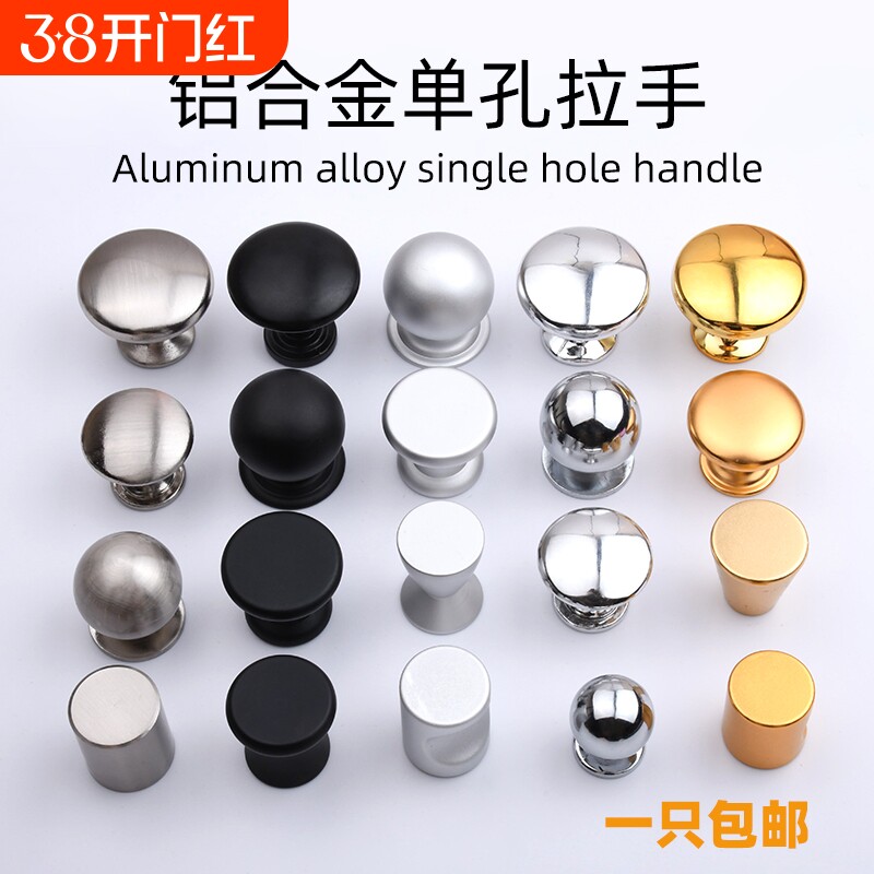 现代橱柜哑黑色金色拉手单孔圆形床关柜铝合金衣柜门柜子抽屉拉手