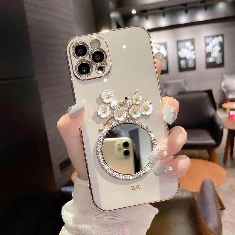 梅花镜子适用小米15/14/13/12手机壳civi4pro红米note14软壳k80高级感k70全包k60防摔turbo4镶钻奢华女新款r