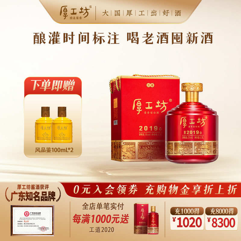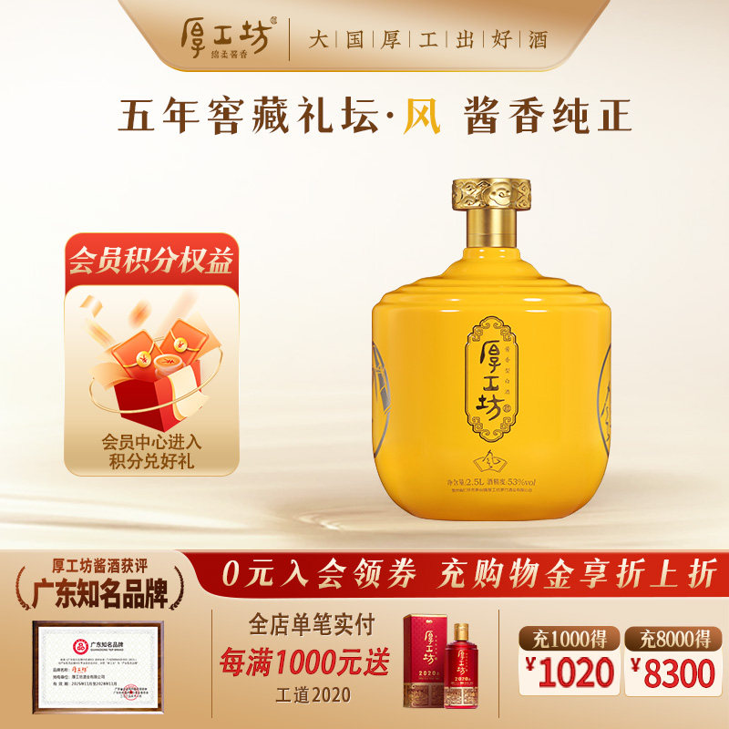 【两坛更优惠】厚工坊工道2019 坛装53度酱香白酒 1500mL