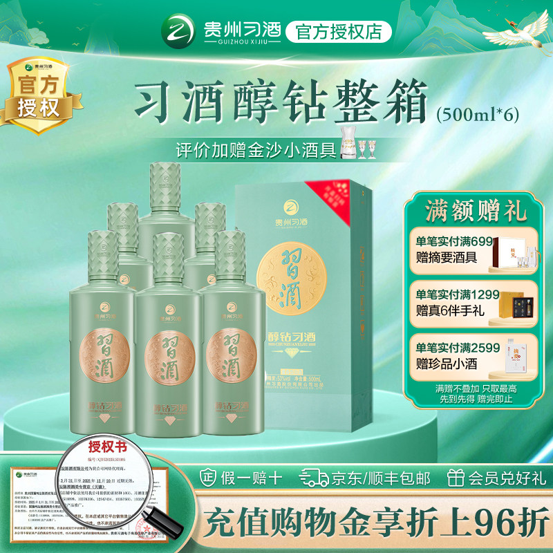 【官方授权】贵州习酒醇钻酱香型白酒53度500mL*6瓶整箱装送礼