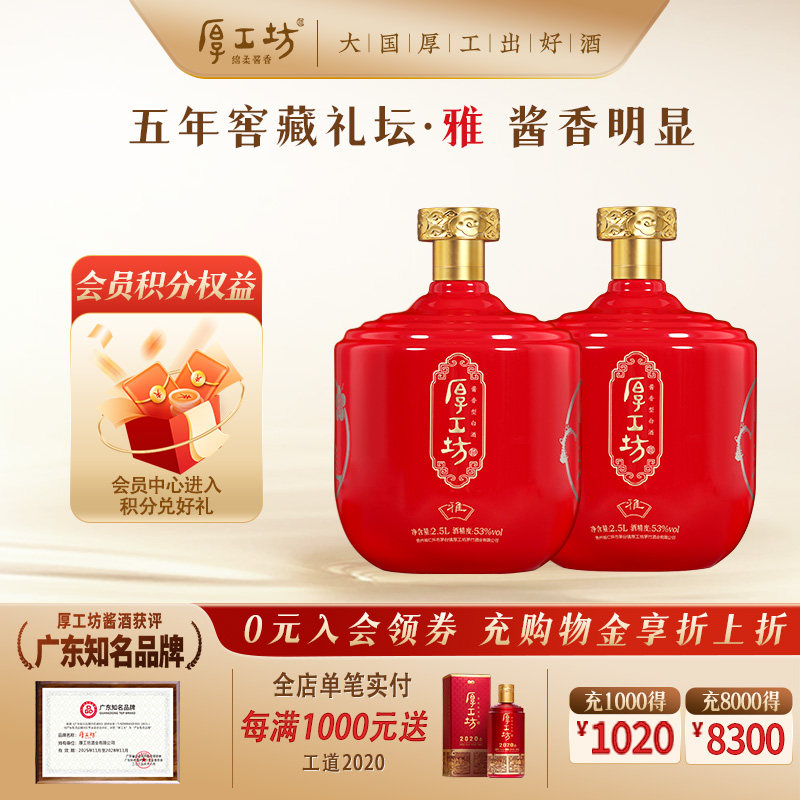 厚工坊五年窖藏·雅 53度礼盒坛装2.5L*2酱香白酒坤沙纯粮食 贵州