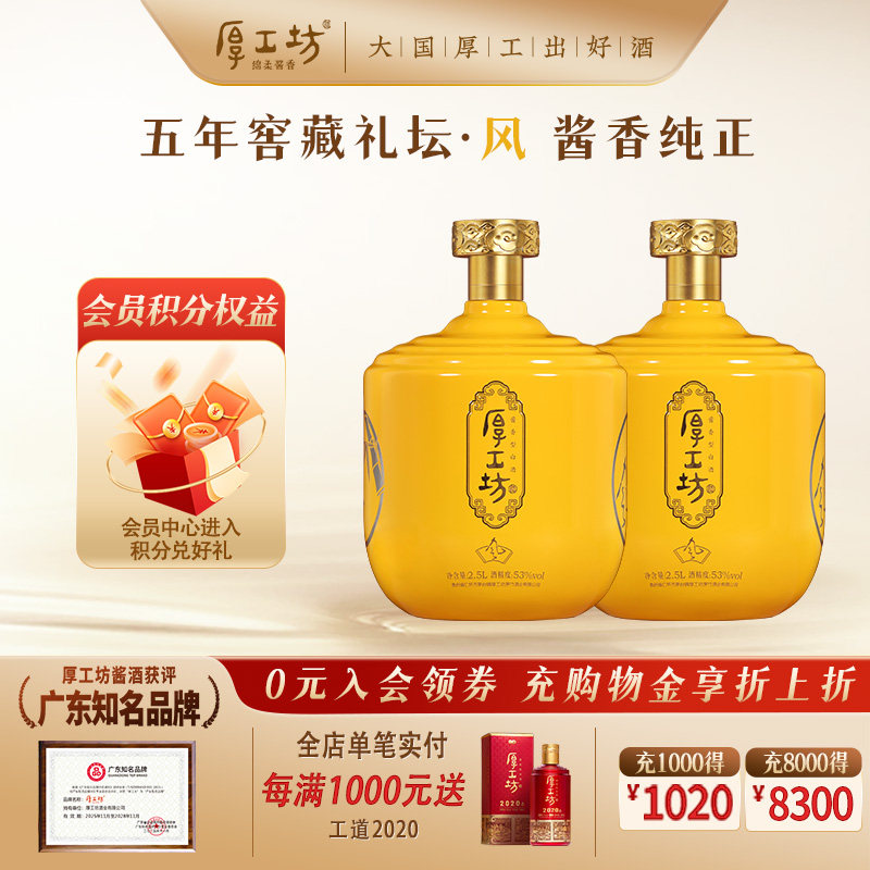 【两坛更优惠】厚工坊五年窖藏风 贵州53度酱香白酒 送礼坛装2.5L