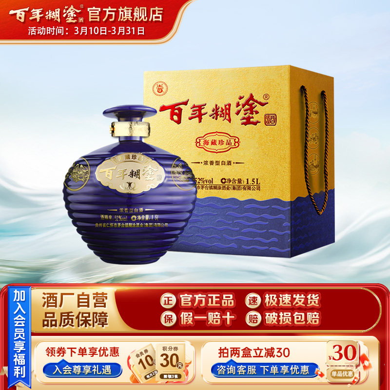 【3斤装礼盒】百年糊涂海藏珍品52度浓香型贵州高粱坛装白酒送礼